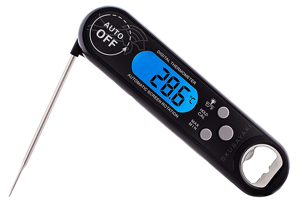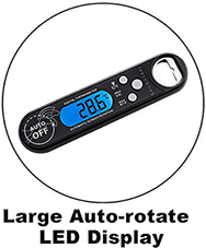 We designed our meat thermometer to suit your cooking conditions with a larger auto-rotate LCD Back-light that stays on for 30 secs and probe that extends 240° for left and right-hand users.